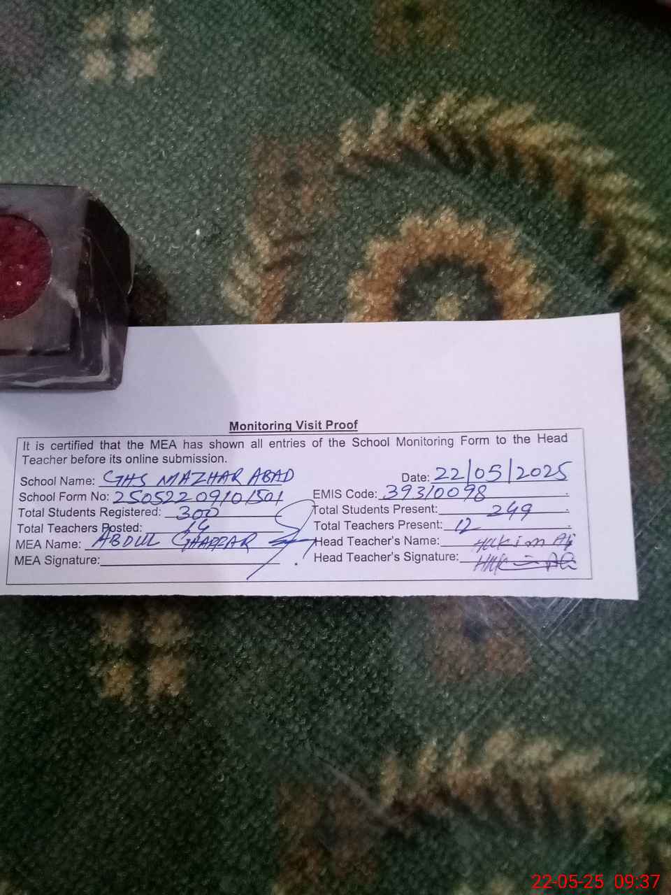 | EMIS Code: 39310098 | Name of School: GHS MAZHAR ABAD | |||