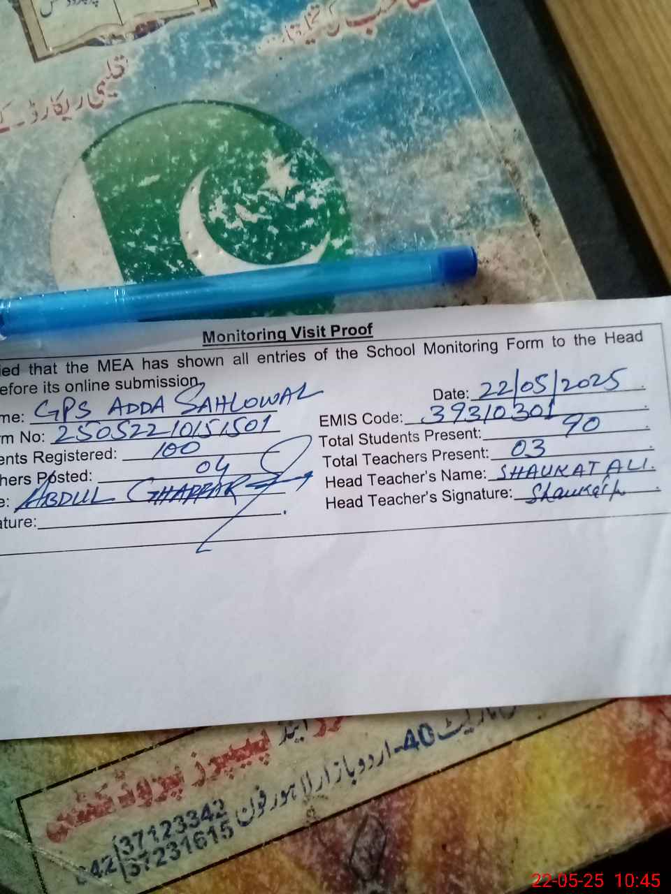 | Name: Sh**** Al**** Wa**** Designation: (School Headmaster's/Headmistress's) PTC/JV Phone/Cell Number: 03**** |