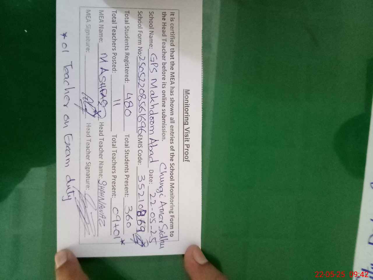 | EMIS Code: 35210869 | Name of School: GPS MAKHDOOM ABAD CHUNGI AMER SIDHU (EX-MCL) | |||