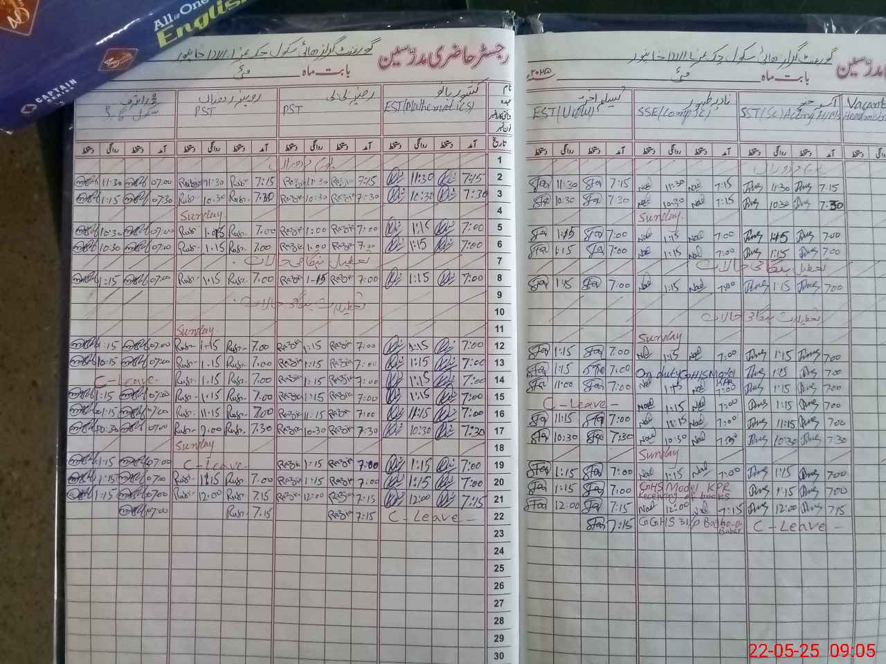 | 31**** | Na**** Za**** | 6 | 2 | 0 | 0 | 0 | 0 | 0 | 0 | 0 | 0 | 0 | Exam Duty |
