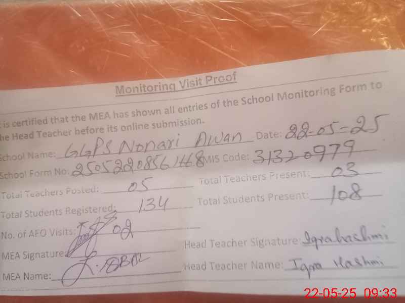 | EMIS Code: 31320979 | Name of School: GGPS NONARI AWAN | |||