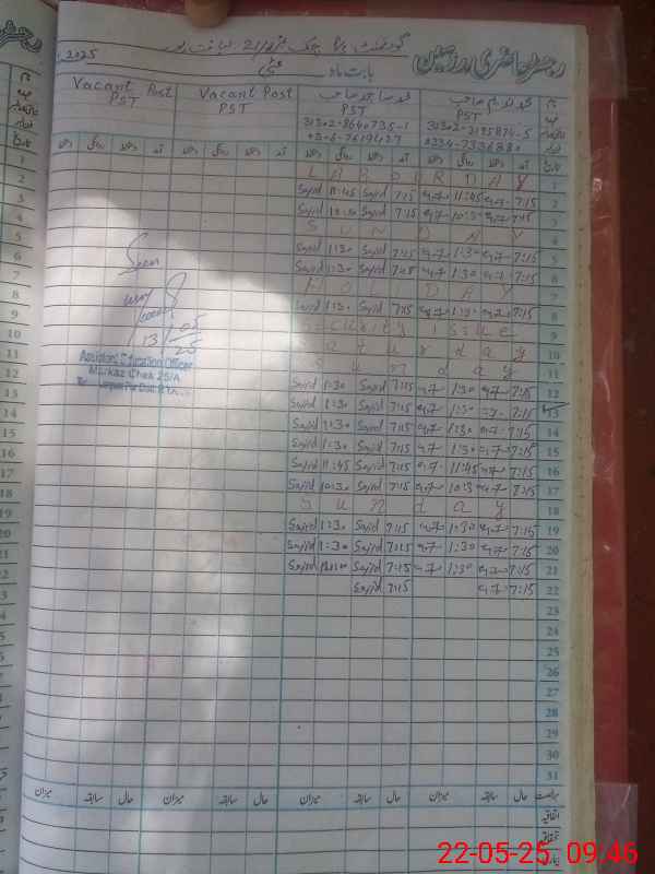 | Name: MU**** NA**** Designation: (School Headmaster's/Headmistress's) PST Phone/Cell Number: 03**** |