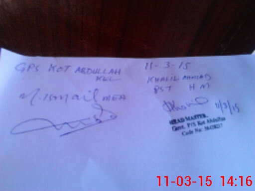 | EMIS Code: 36420217 | Name of School: GPS KOT ABDULLAH, P/O MAKHDOOM PUR, KHANEWAL | |||