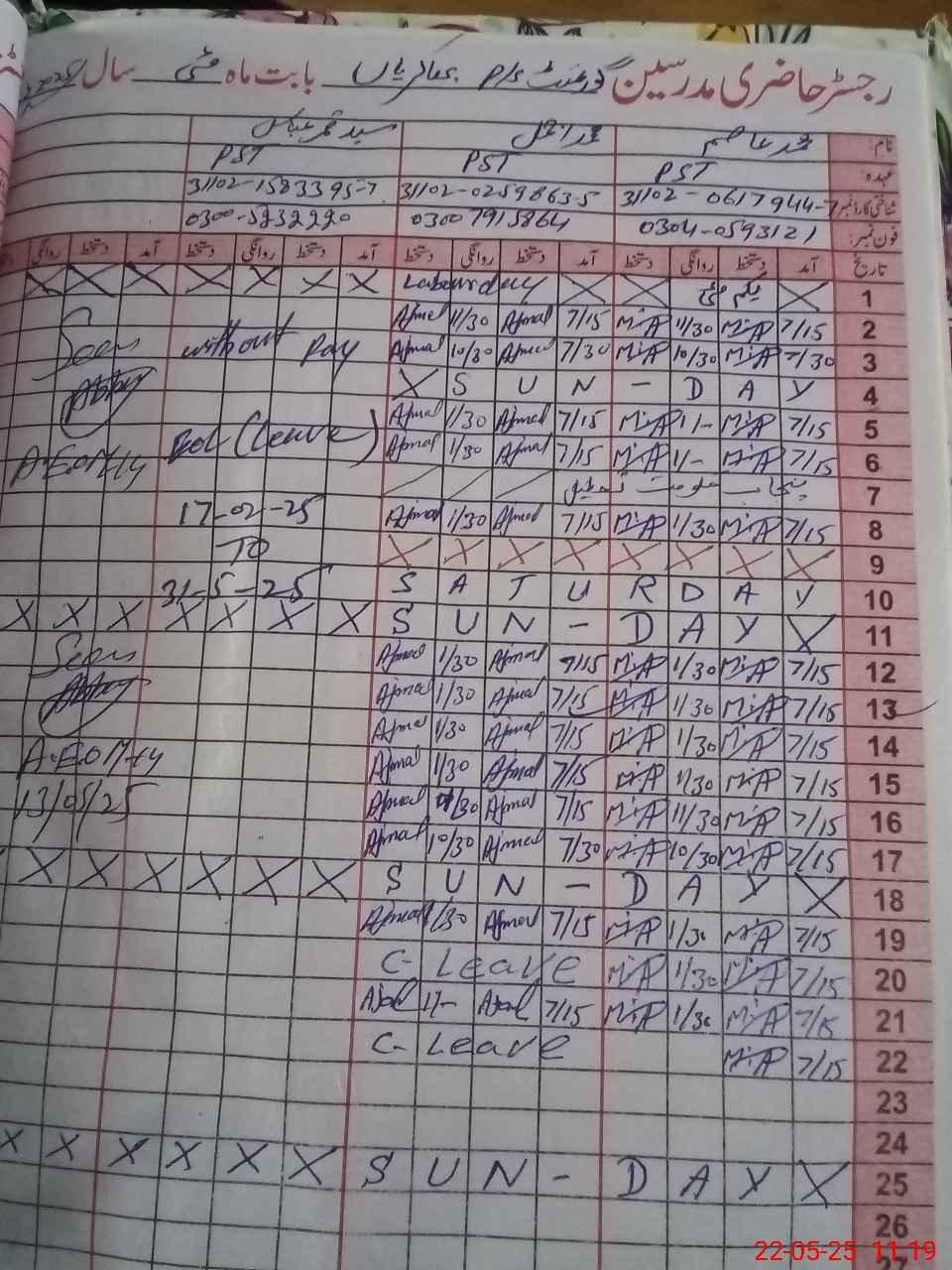 | 31**** | Sy**** Qa**** Ab**** | PST | Regular | 0 | 0 | 30 | 0 | 0 | 0 | 0 | 0 | 0 | Absent (Un-Authorized) |