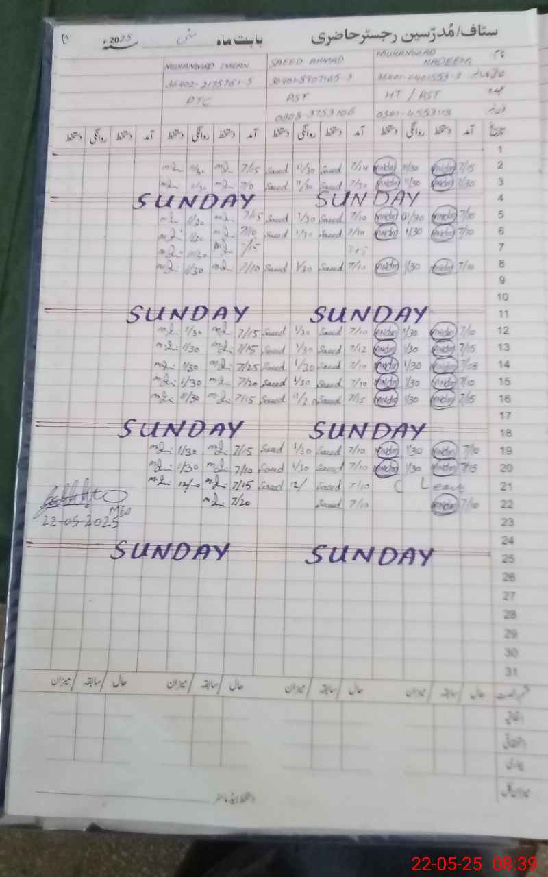 | Name: Mu**** Na**** Designation: (School Headmaster's/Headmistress's) PST Phone/Cell Number: 03**** |