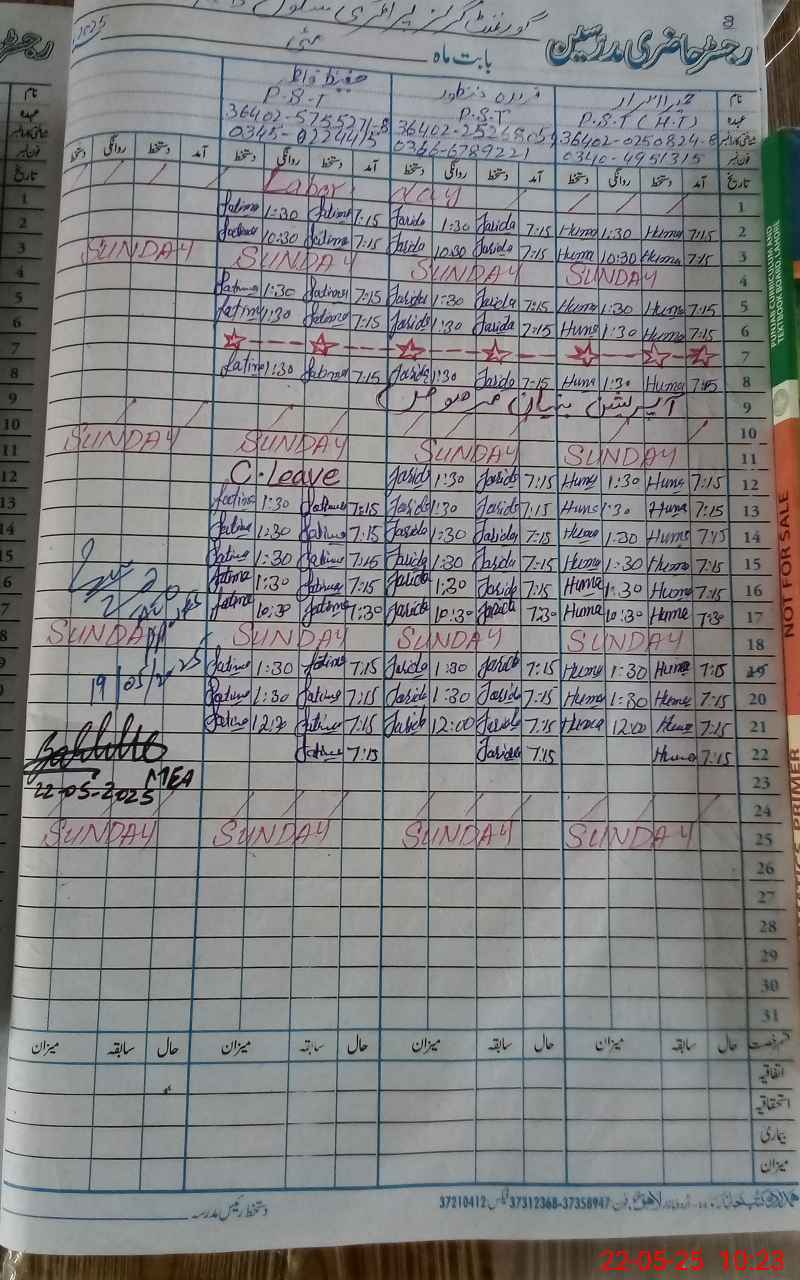 | Name: HU**** IS**** Designation: (School Headmaster's/Headmistress's) PST Phone/Cell Number: 03**** |