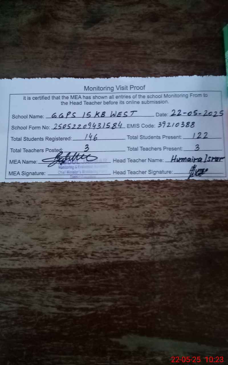 | EMIS Code: 39210388 | Name of School: GGPS 15-KB WEST | |||