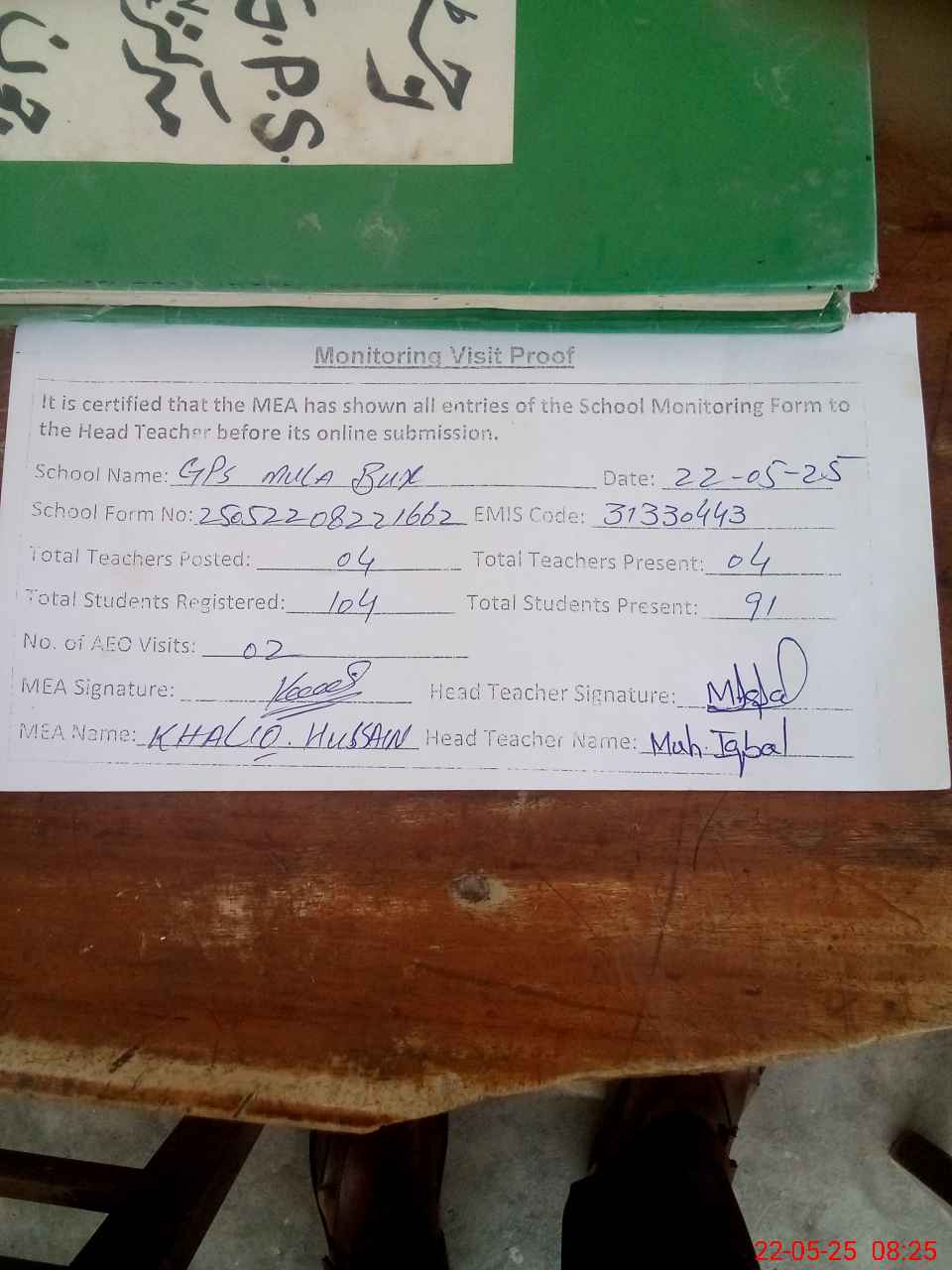 | EMIS Code: 31330443 | Name of School: GPS MULA BUKHSH | |||