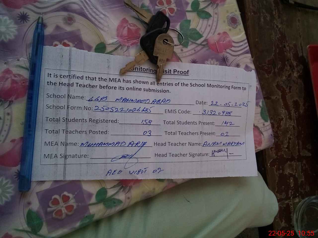 | EMIS Code: 31320988 | Name of School: GGPS MAHMOOD ABAD | |||