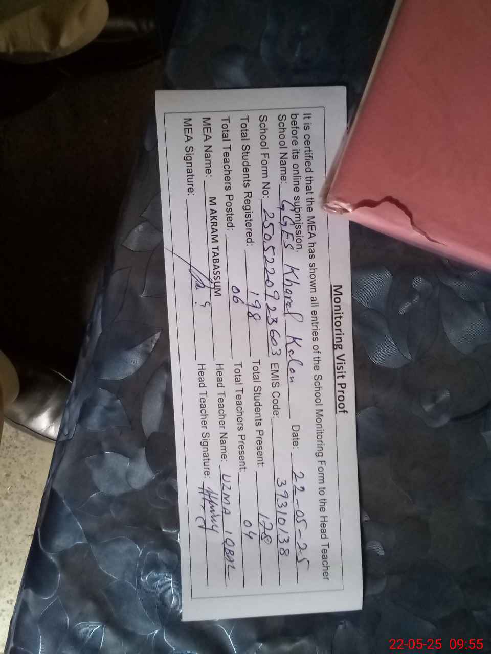 | Certified that this School was Inspected by the Undersigned MEA/DMO Today and the Information Stated Above is as Per Record. | |||||