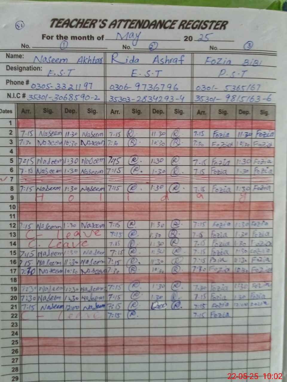 | 35**** | As**** Ah**** | NQ | 0 | 0 | 30 | 0 | 0 | 0 | 0 | 0 | 0 | Absent (Un-Authorized) | |