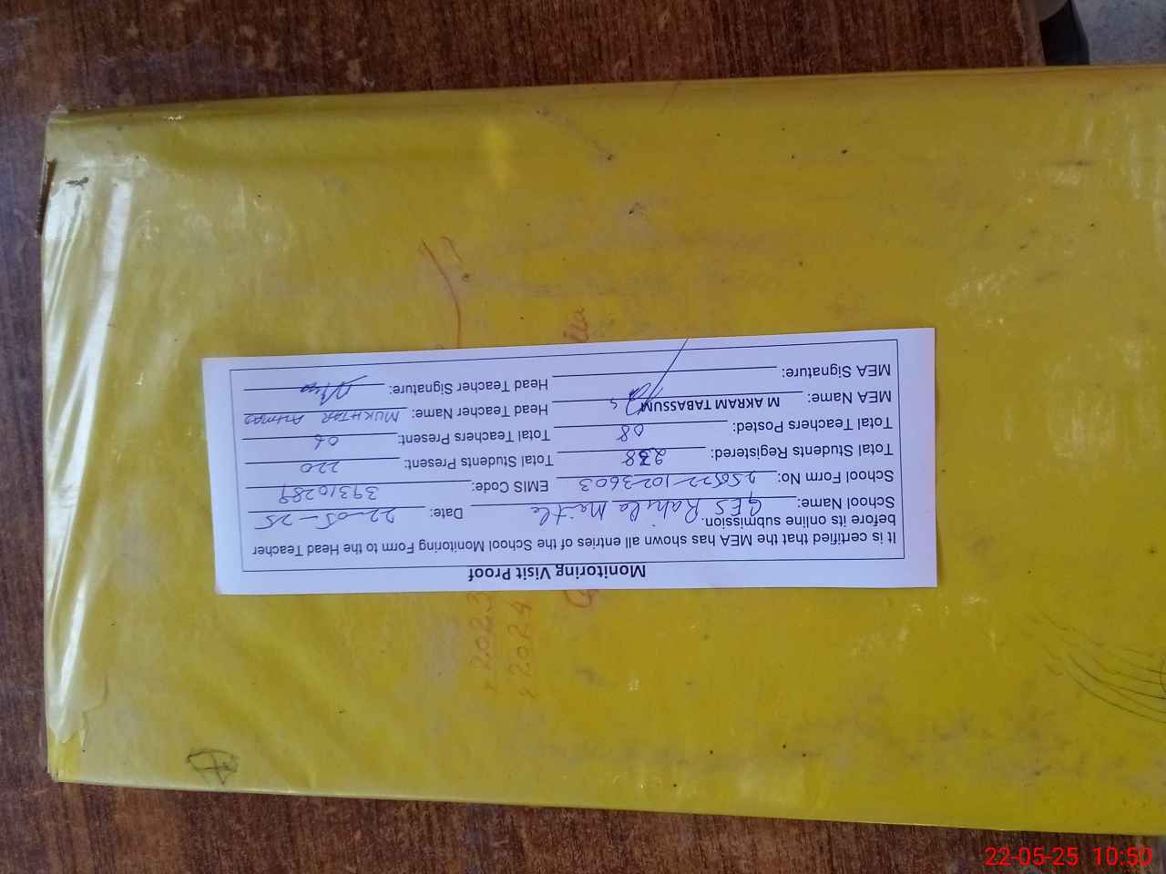 | Attendance Register | Head Teacher | MEA with School | Visit Proof |