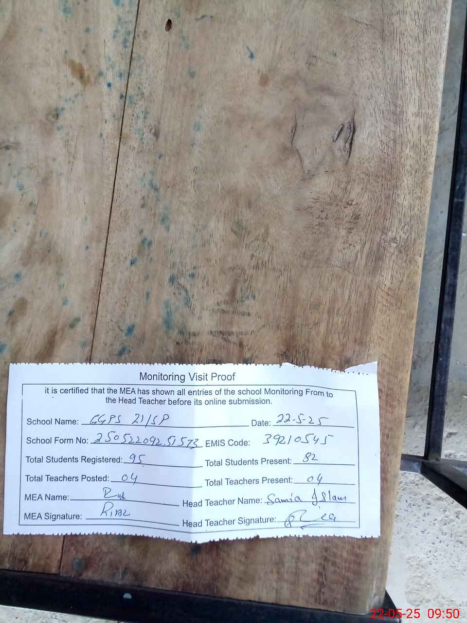 | EMIS Code: 39210545 | Name of School: GGPS 21/SP (Newly Established) | |||