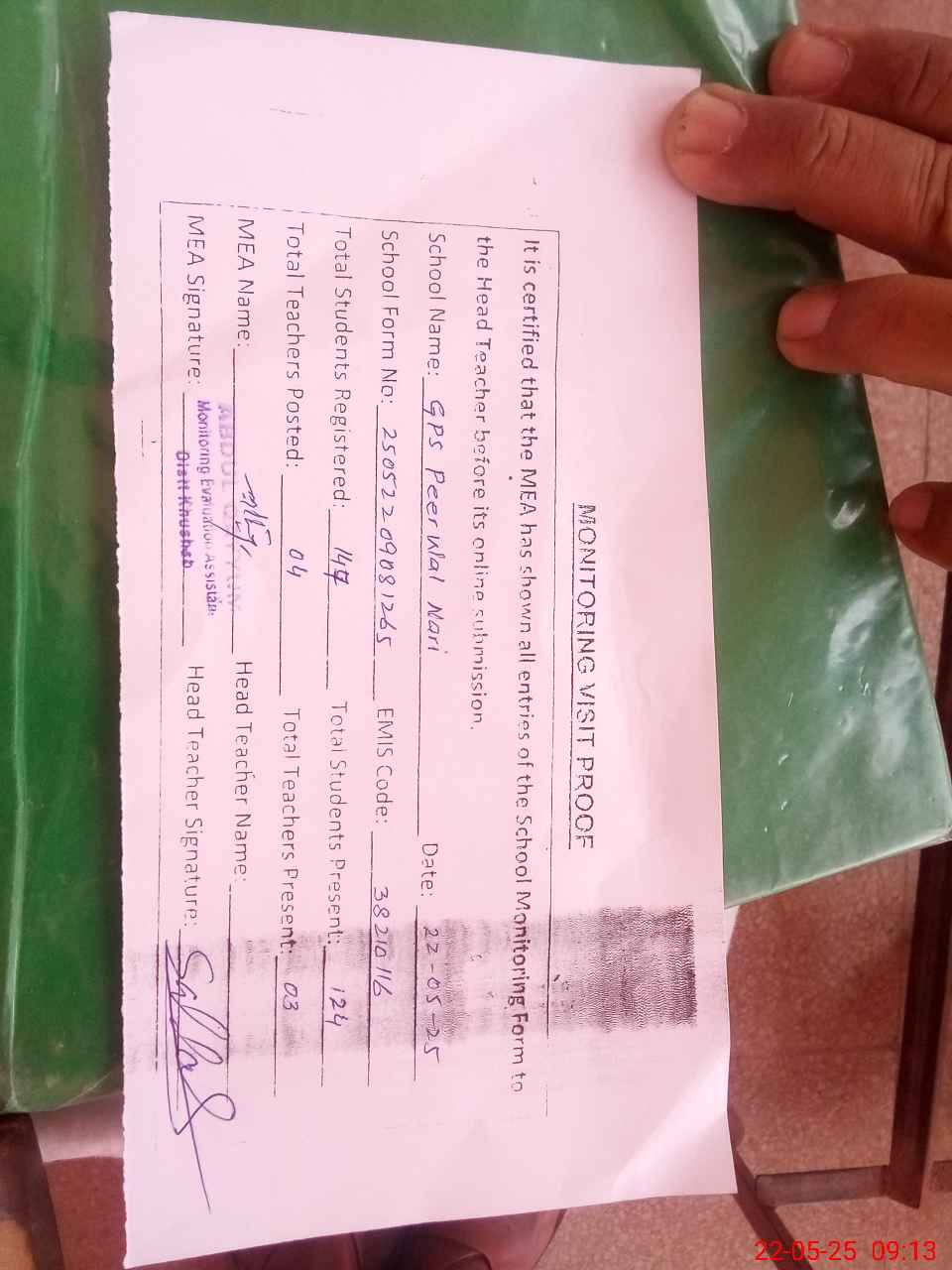| EMIS Code: 38210116 | Name of School: GPS PEER WAL NARI | |||