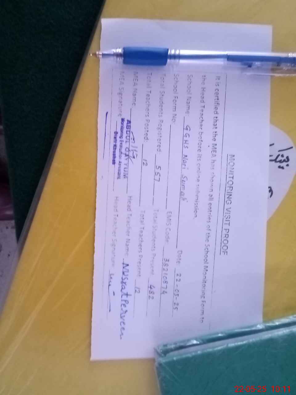 | Name: Gh**** Pe**** Designation: (School Headmaster's/Headmistress's) SST Phone/Cell Number: 03**** |