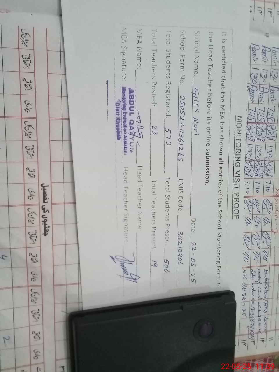 | Certified that this School was Inspected by the Undersigned MEA/DMO Today and the Information Stated Above is as Per Record. | |||||