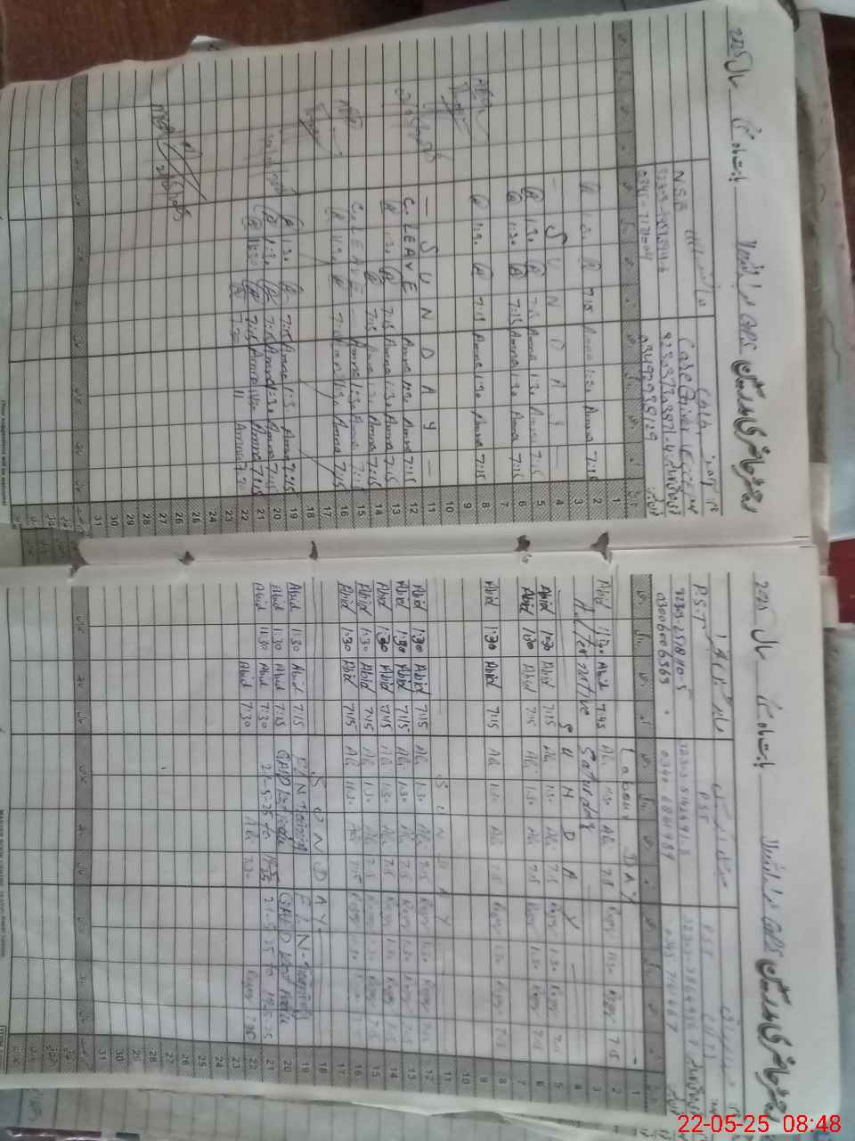 | CNIC | Full Name | Designation | R/C | Absence During Last Calender Month |