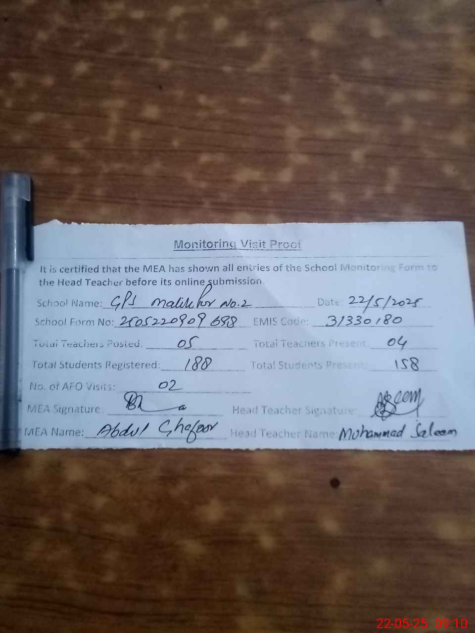 | EMIS Code: 31330180 | Name of School: GPS MALIK PUR NO. 2 | |||