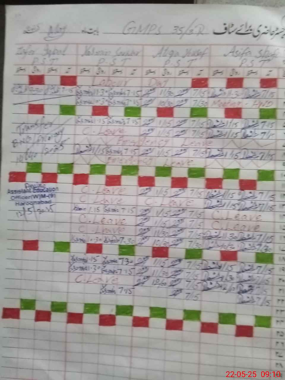 | CNIC | Full Name | Designation | R/C | Absence During Last Calender Month |