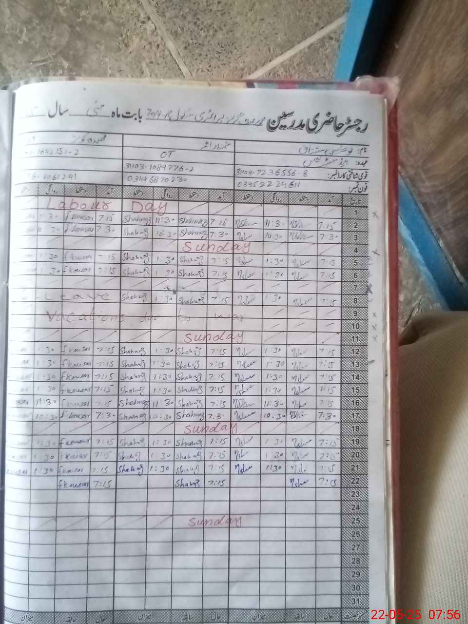 | Name: No**** Mu**** Designation: (School Headmaster's/Headmistress's) PST Phone/Cell Number: 03**** |