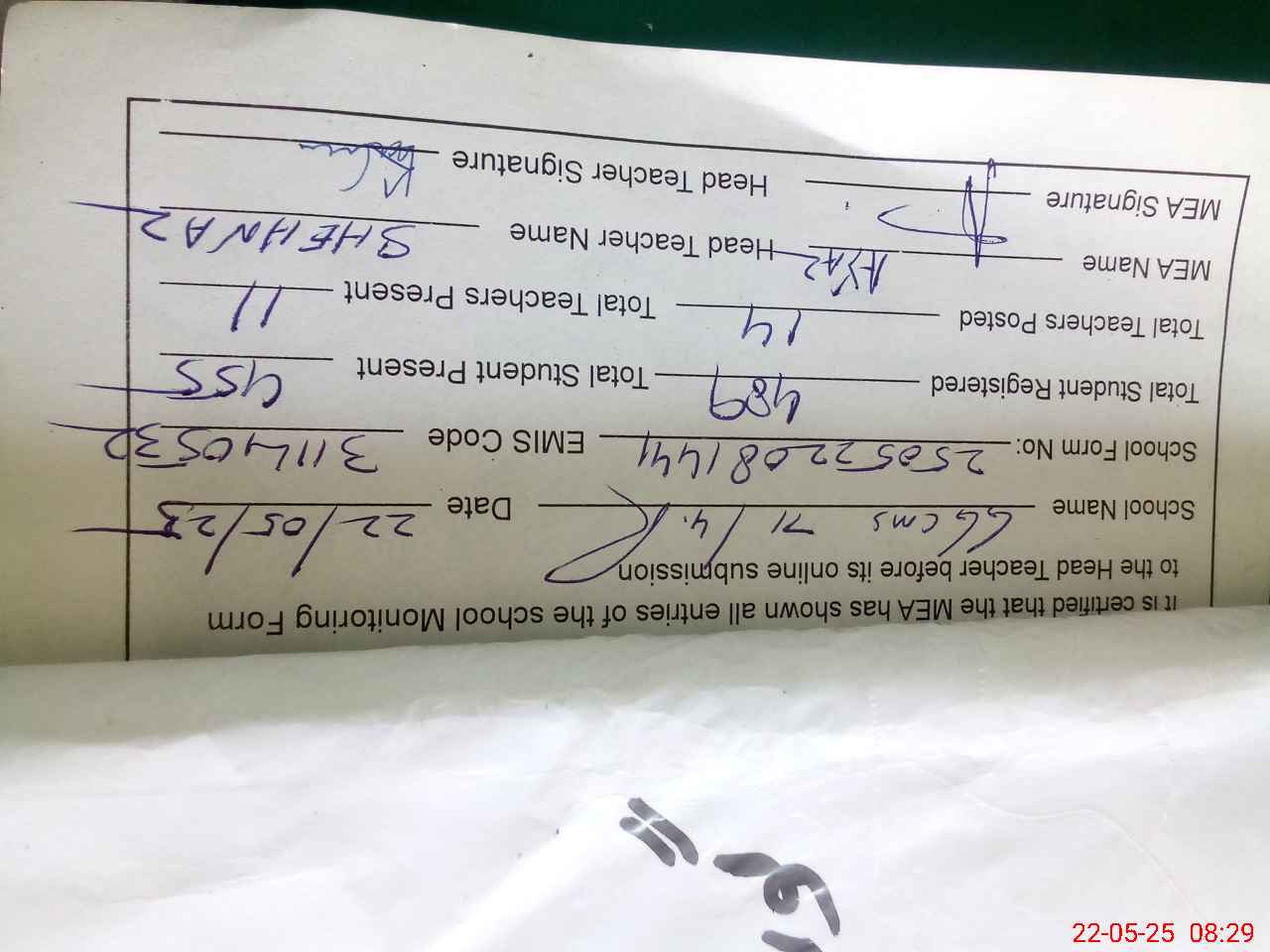 | Certified that this School was Inspected by the Undersigned MEA/DMO Today and the Information Stated Above is as Per Record. | |||||