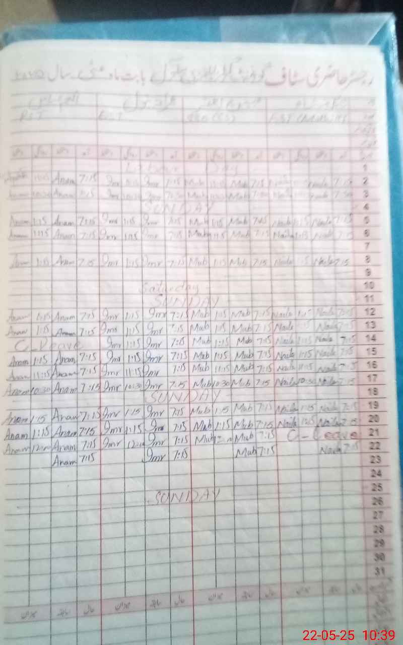 | CNIC | Full Name | Designation | R/C | Absence During Last Calender Month |