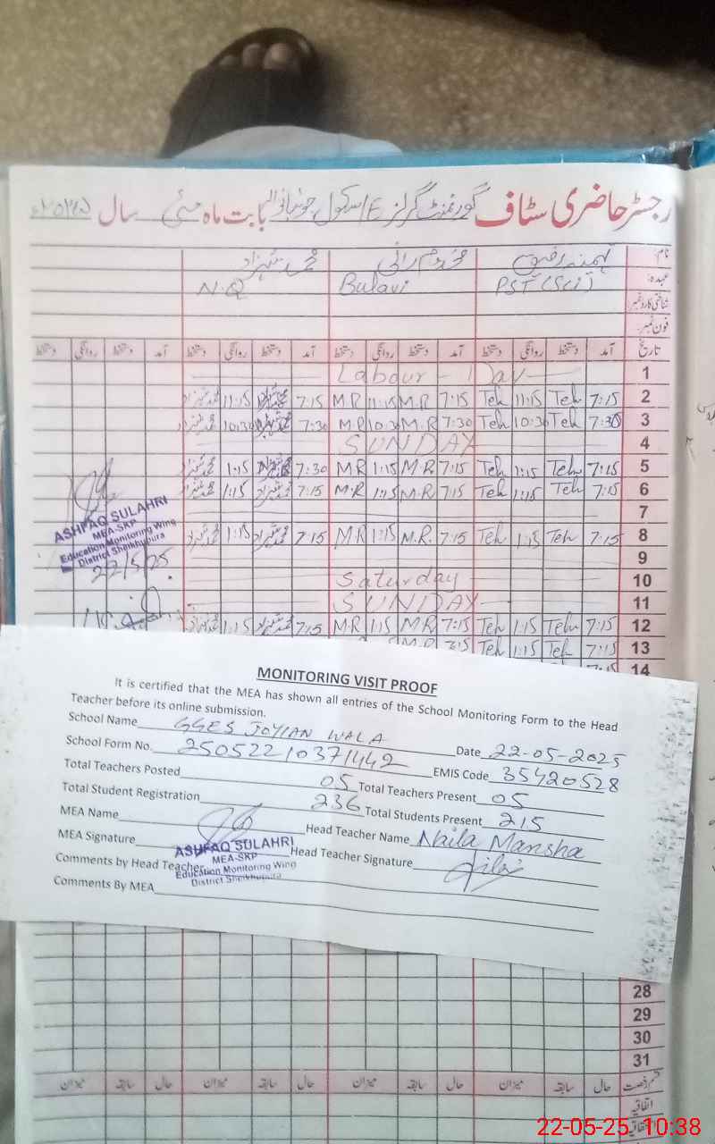 | EMIS Code: 35420528 | Name of School: GGES JOYIAN WALA | |||