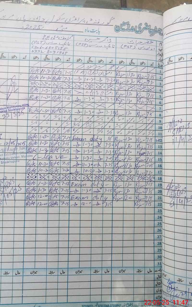 | Name: KH**** HA**** Designation: (School Headmaster's/Headmistress's) PST Phone/Cell Number: 03**** |