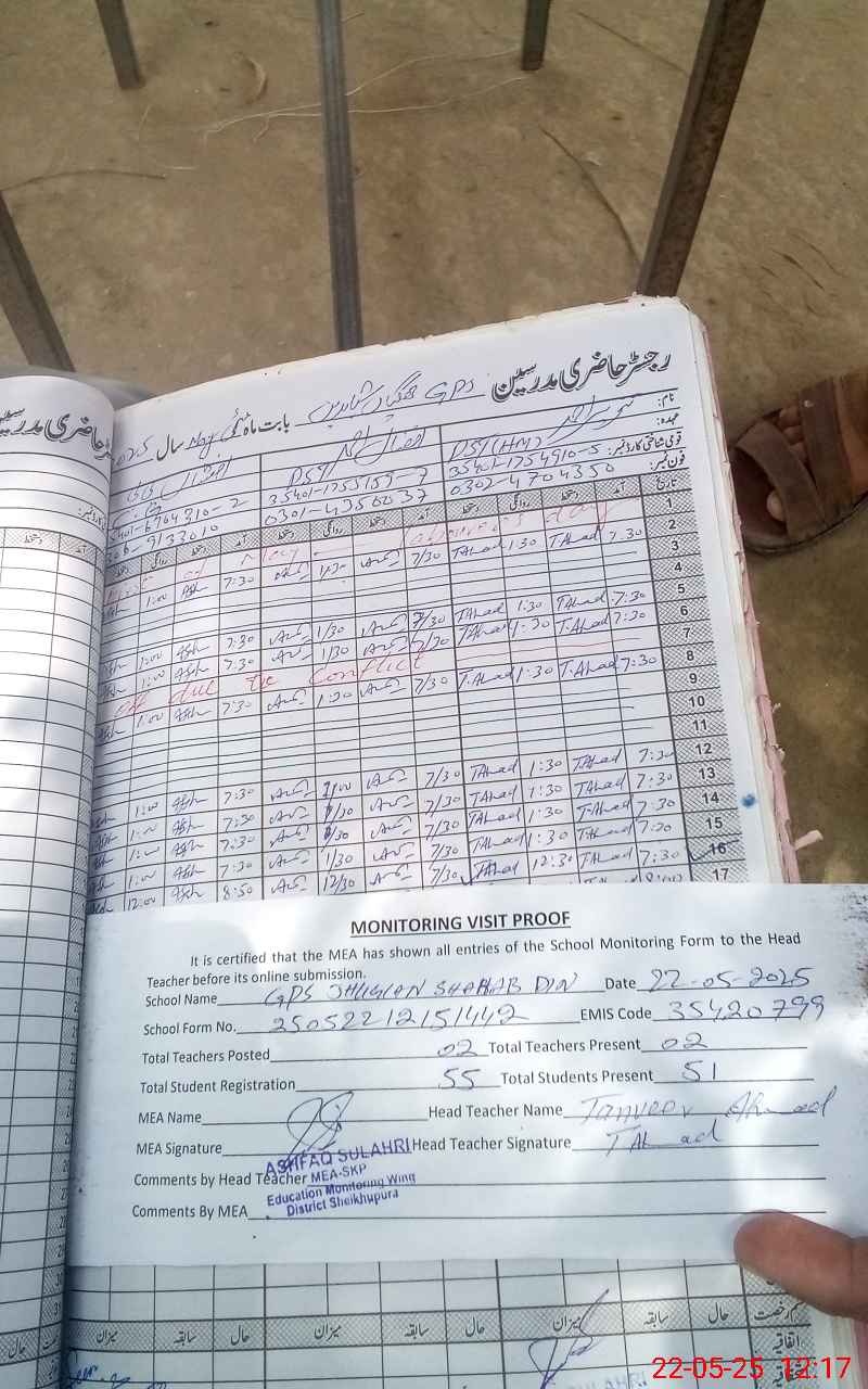 | EMIS Code: 35420799 | Name of School: GPS JHUGIAN SHAHAB DIN | |||