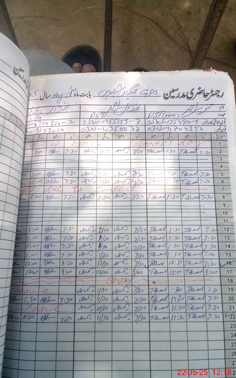 | CNIC | Full Name | Designation | R/C | Absence During Last Calender Month |