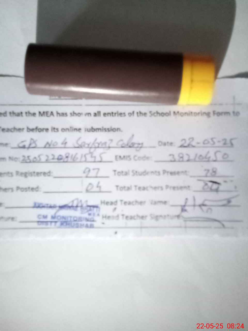 | EMIS Code: 38210450 | Name of School: GPS NO. 4 SARFRAZ COLONY JAUHARABAD | |||