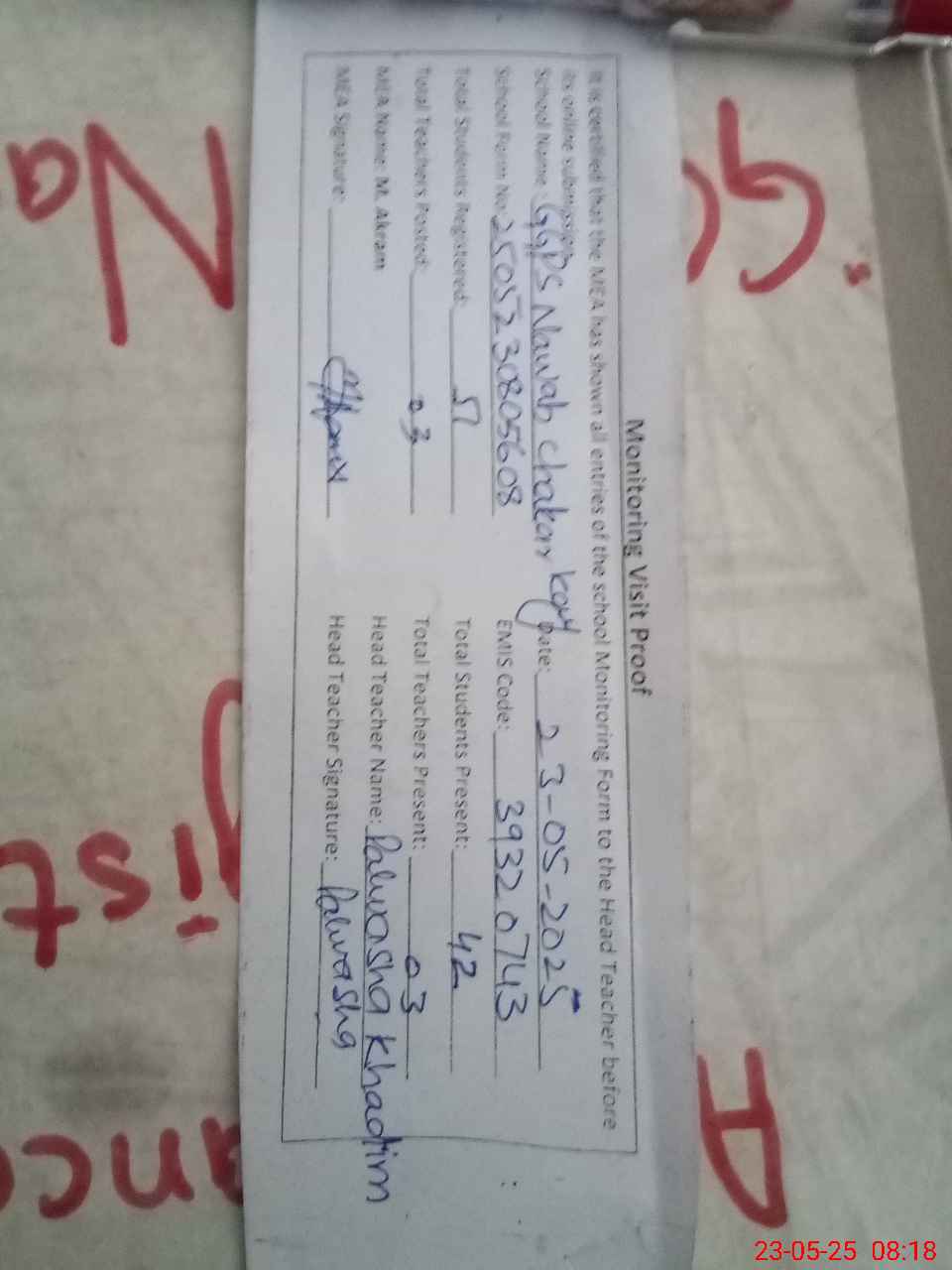 | EMIS Code: 39320743 | Name of School: GGPS NAWAB CHAKAR KAY | |||