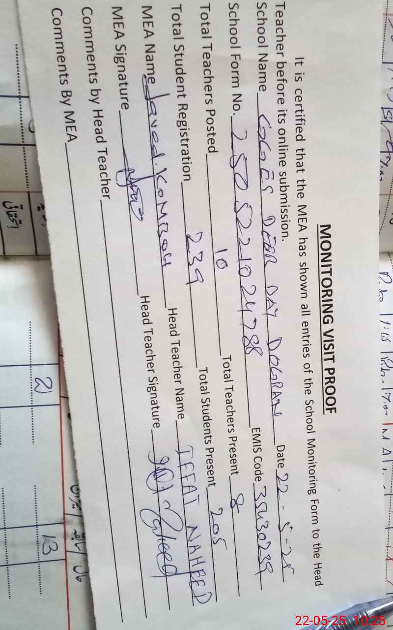 | Attendance Register | Head Teacher | MEA with School | Visit Proof |