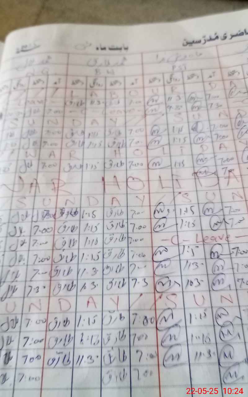 | CNIC | Full Name | Designation | R/C | Absence During Last Calender Month |