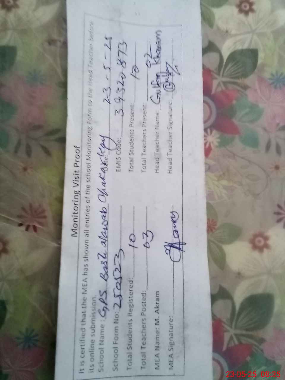 | Name: Gh**** Kh**** Designation: (School Headmaster's/Headmistress's) PST Phone/Cell Number: 03**** |