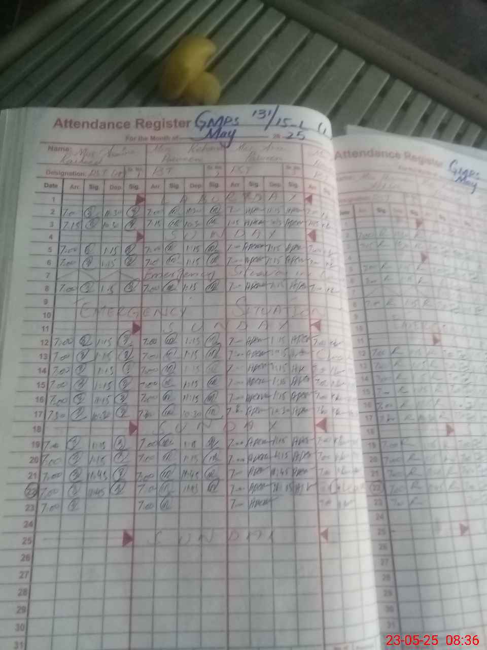 | 36**** | Gh**** Ba**** | PST | Regular | 0 | 3 | 0 | 0 | 0 | 0 | 0 | 0 | 0 | Exam Duty |