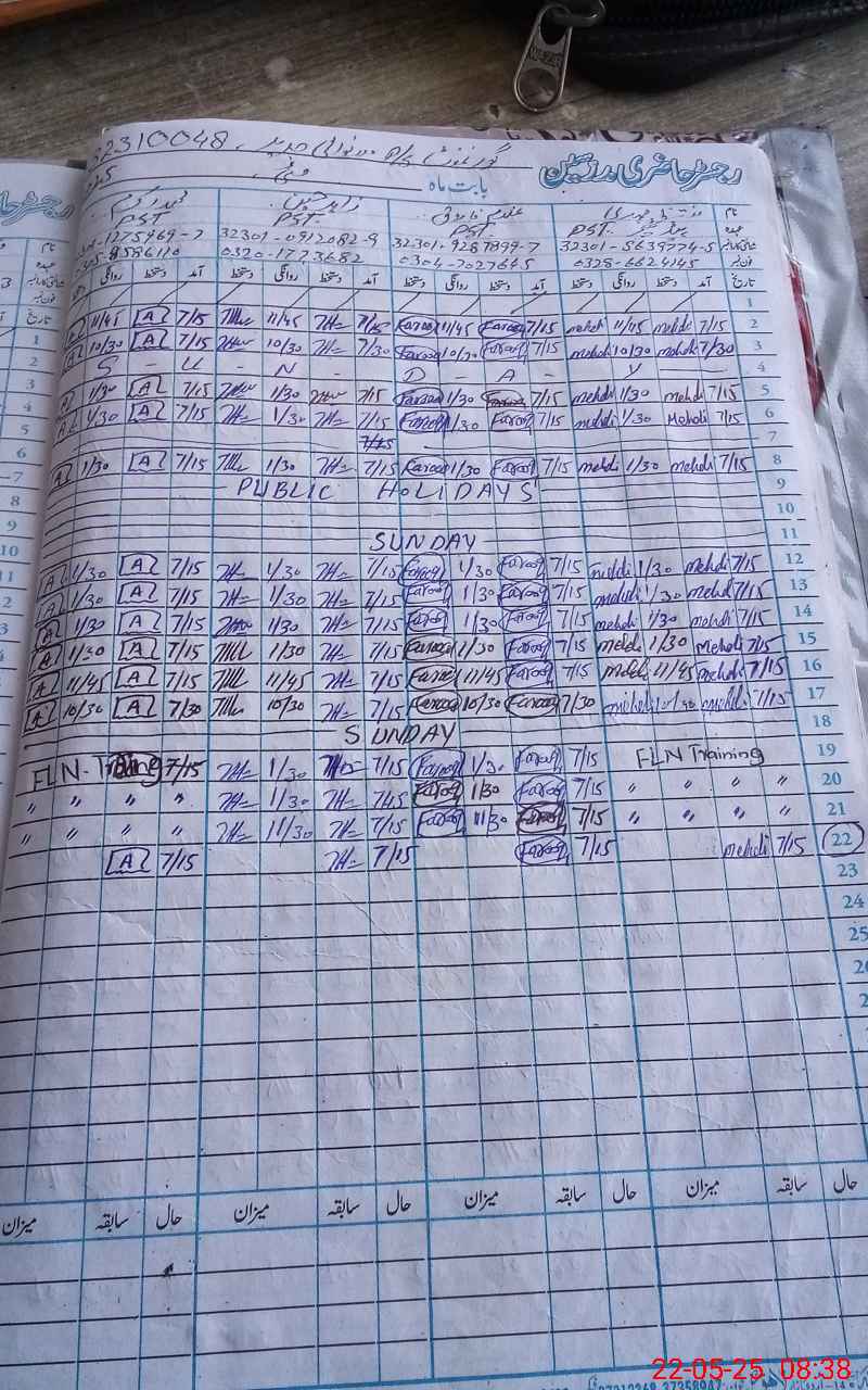| Name: FI**** AH**** Designation: (School Headmaster's/Headmistress's) PST Phone/Cell Number: 03**** |