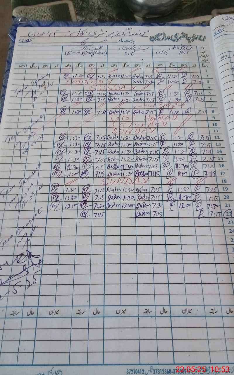 | CNIC | Full Name | Designation | R/C | Absence During Last Calender Month |