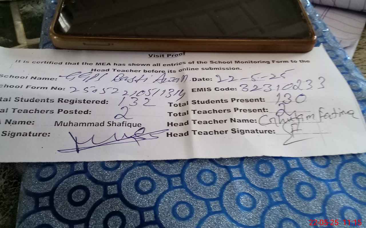 | EMIS Code: 32310233 | Name of School: GGPS BASTI AWAN | |||