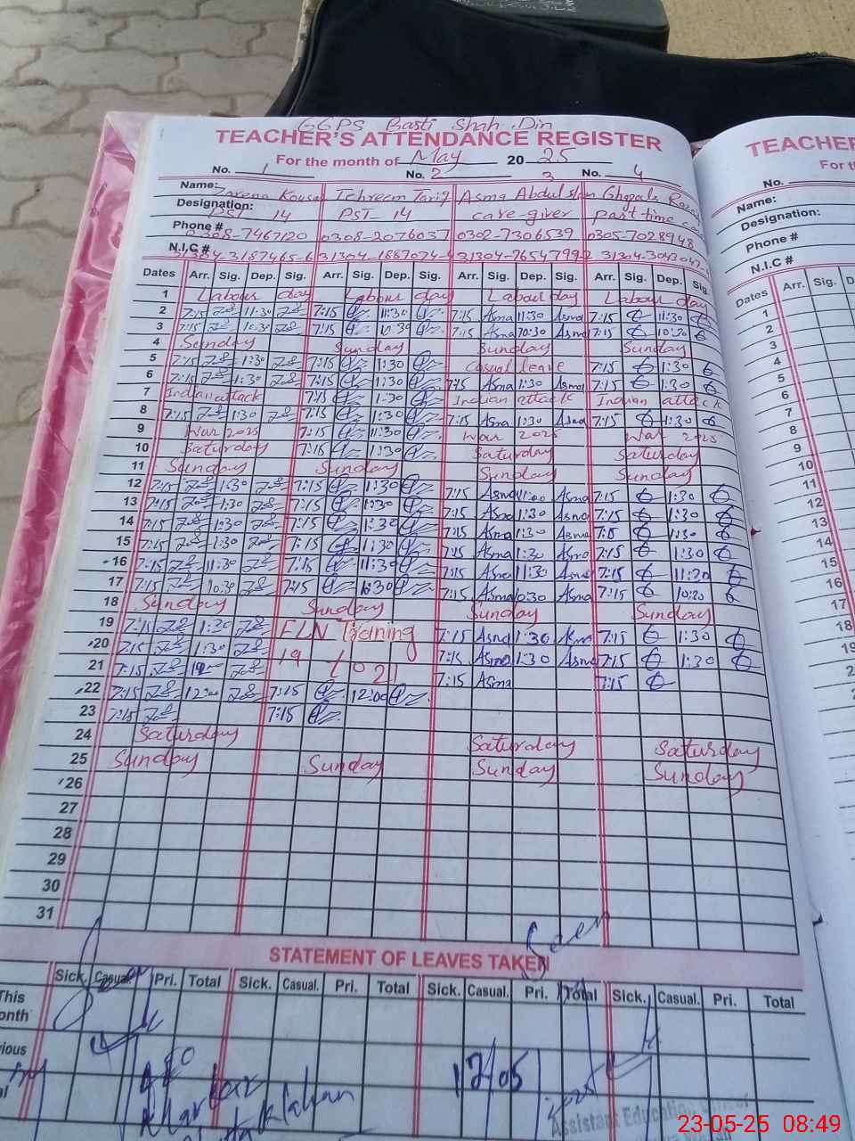 | CNIC | Full Name | Designation | R/C | Absence During Last Calender Month |
