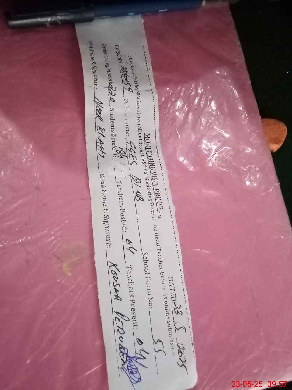 | Attendance Register | Head Teacher | MEA with School | Visit Proof |