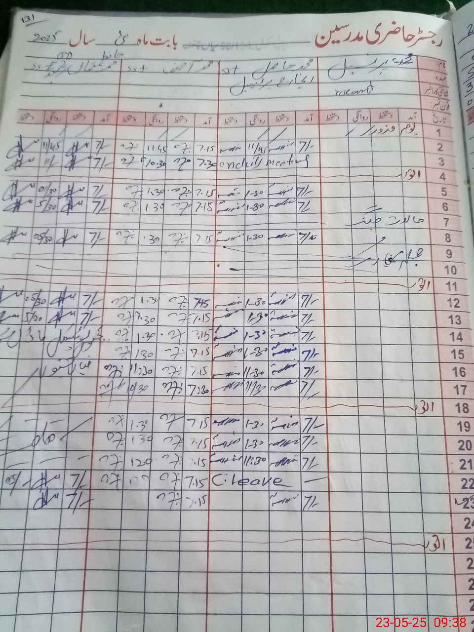 | CNIC | Full Name | Designation | R/C | Absence During Last Calender Month |