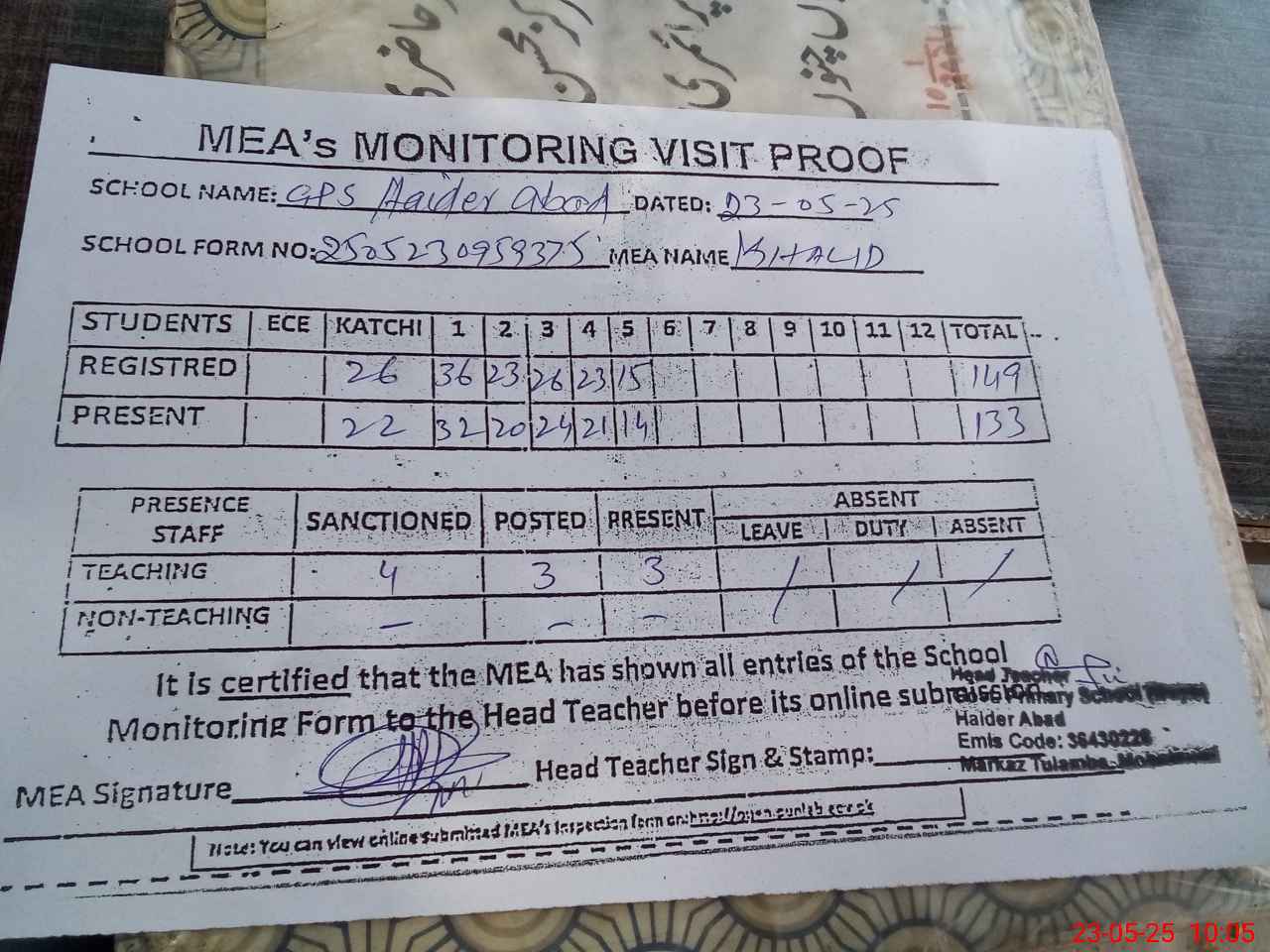 | EMIS Code: 36430228 | Name of School: GPS HAIDER ABAD, TULAMBA | |||
