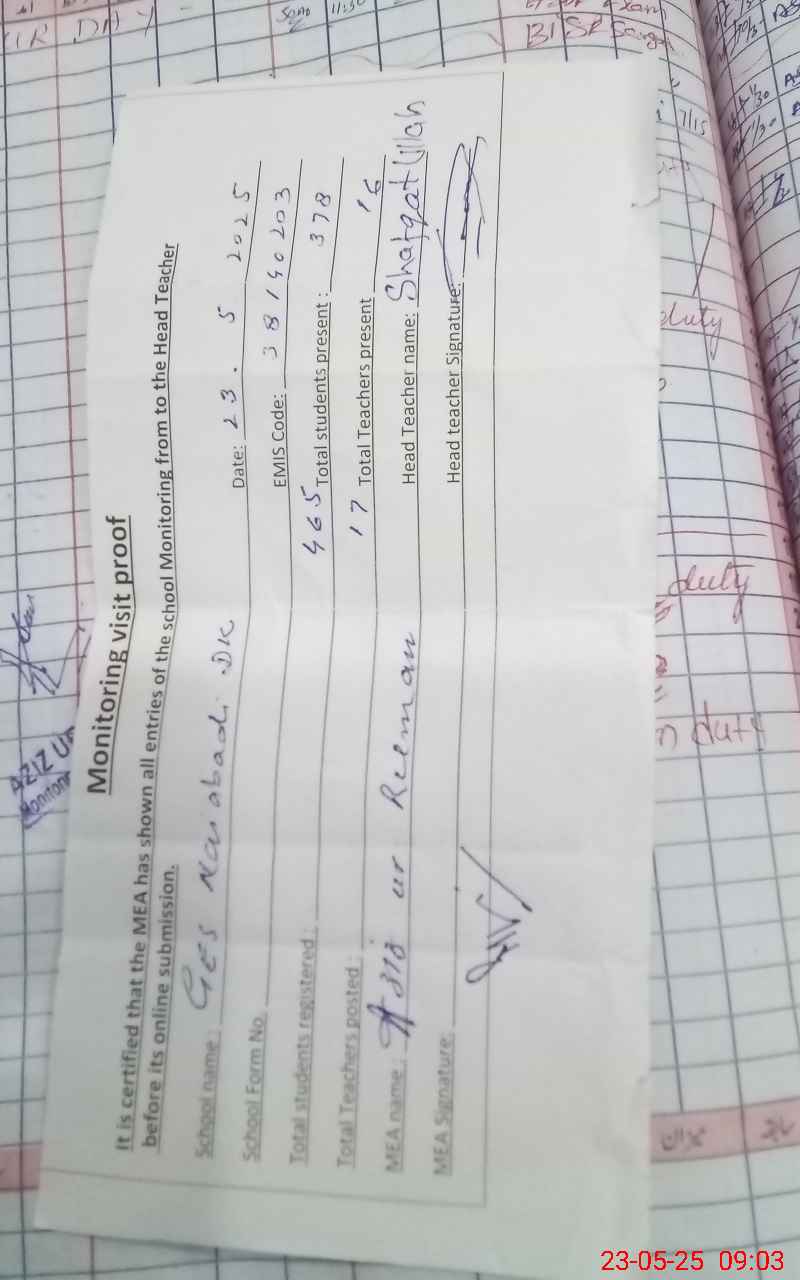 | EMIS Code: 38140203 | Name of School: GES NAI ABADI DARYA KHAN | |||