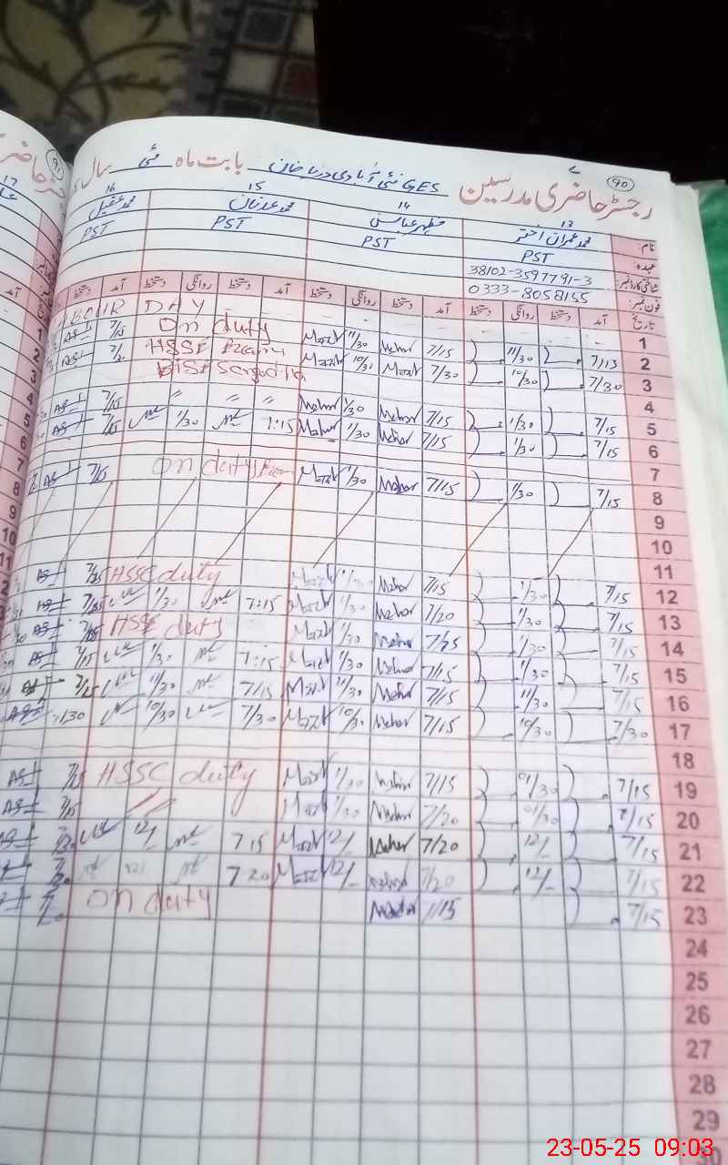 | Name: Sh**** Ul**** Ha**** Designation: (School Headmaster's/Headmistress's) S.S.T Phone/Cell Number: 03**** |