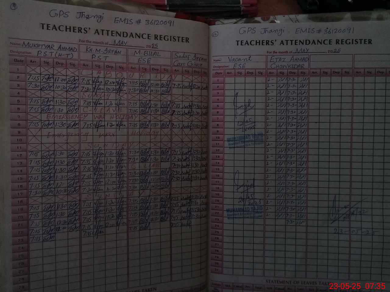 | Attendance Register | Head Teacher | MEA with School | Visit Proof |