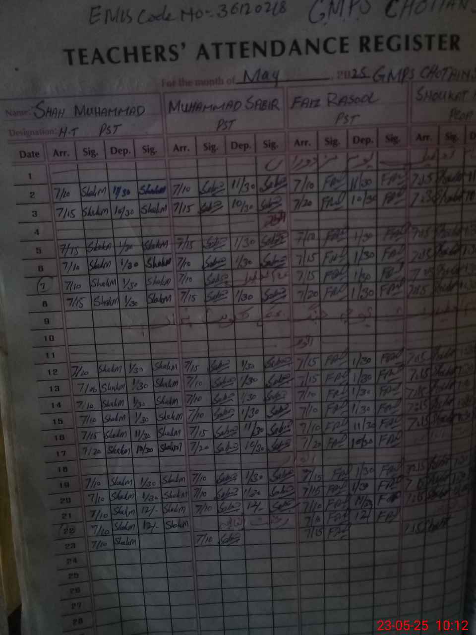 | EMIS Code: 36120218 | Name of School: GMPS CHOTAIN SHARIF | |||