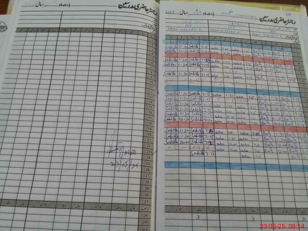 | CNIC | Full Name | Designation | R/C | Absence During Last Calender Month |
