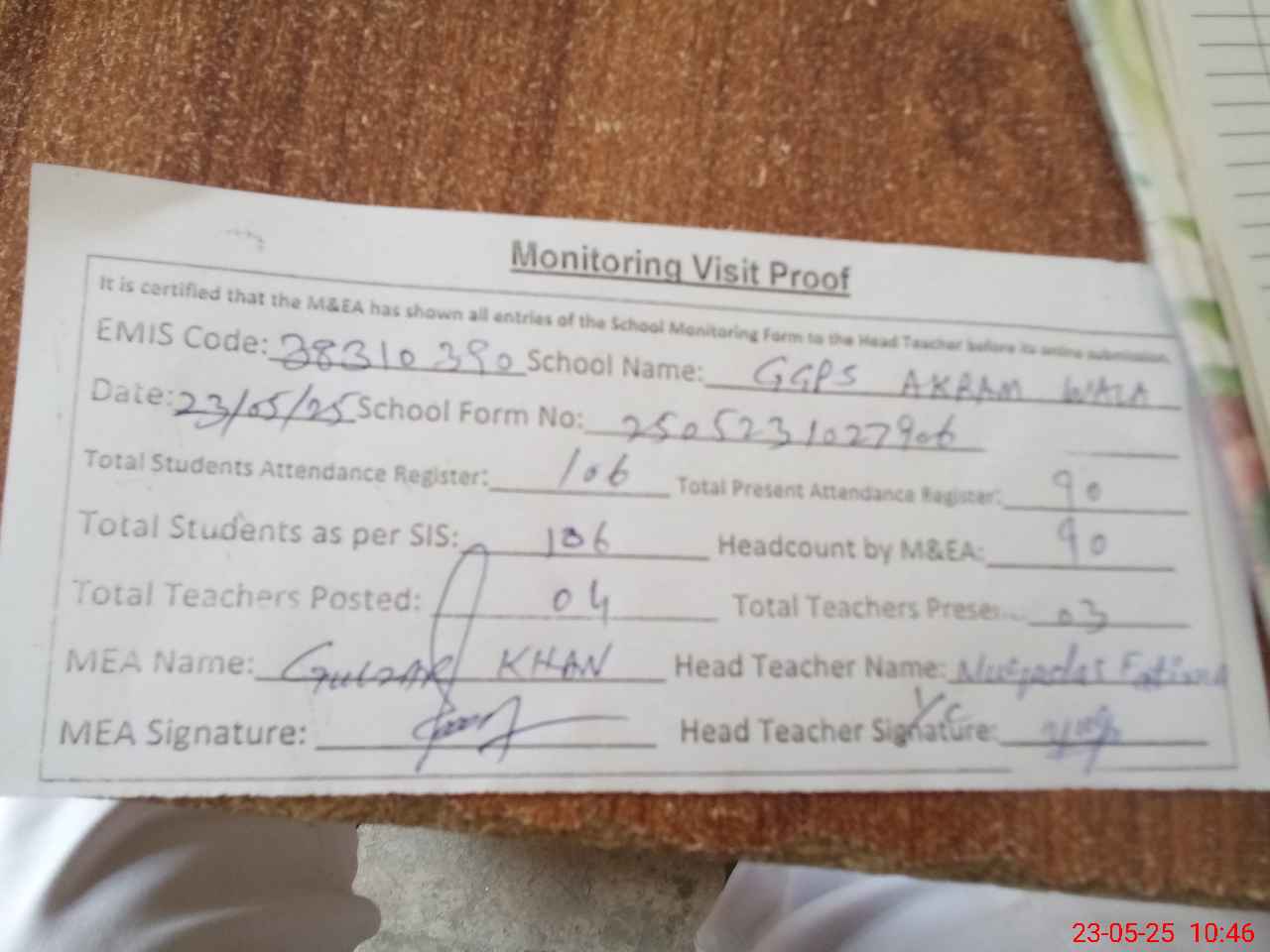 | EMIS Code: 38310390 | Name of School: GGPS AKRAM WALA | |||
