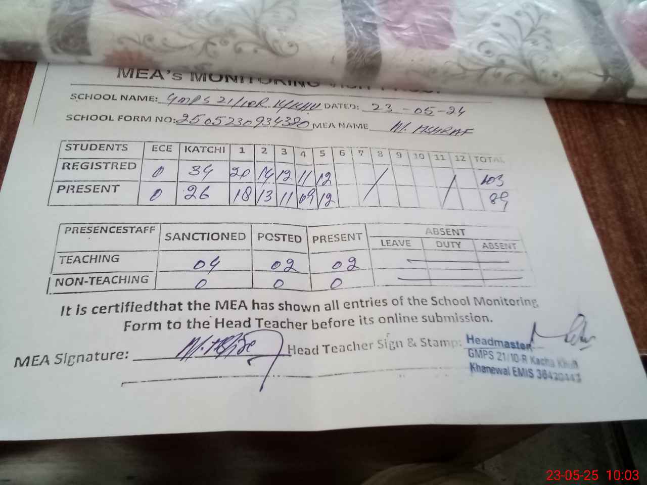 | EMIS Code: 36420442 | Name of School: GMPS 21/10-R, KACHA KHUH | |||